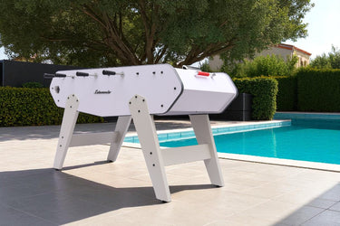 Tentati da un biliardino da esterno? Gli appassionati di calcio balilla possono portare la loro passione in giardino con un biliardino da esterno progettato specificamente per l'uso all'aperto. I vostri bambini hanno invitato gli amici per un pomeriggio in giardino? Questo è il modo perfetto per farli divertire! Ma anche gli adulti hanno il loro biliardino da esterno dedicato. Dal livello intermedio a quello professionale, i nostri biliardini da esterno sono disponibili in numerose versioni per tutti i profili di giocatore. Biliardini da esterno resistenti a tutto! Pioggia, raggi UV e insetti non comprometteranno la resistenza dei nostri biliardini da esterno. I loro materiali ultraresistenti garantiscono loro una grande durata anche in caso di maltempo. L'estrema robustezza della loro struttura, il legno trattato antiumidità, la vernice resistente ai raggi UV, le barre in acciaio ad alta resistenza garantite anticorrosione e, infine, i giocatori in plastica indistruttibile garantiscono una durata impeccabile. Potreste installare il vostro biliardino da esterno in mezzo al bosco per godervi la natura durante le vostre sessioni di allenamento! Solo perché un biliardino da esterno è costruito per resistere a tutte le condizioni atmosferiche non significa che non dobbiate prendervene cura! Ricordatevi semplicemente di coprirlo con la sua custodia protettiva. In inverno, si consiglia inoltre di riporlo in un luogo asciutto e buio. Pulire viti e bulloni con un prodotto specifico contribuirà a preservarne il colore e l'impermeabilità. I biliardini da esterno sono stati progettati per la natura e sono quindi perfettamente adatti alle strutture all'aperto. Centri ricreativi, campeggi e altri centri sportivi non hanno motivo di esitare un attimo!