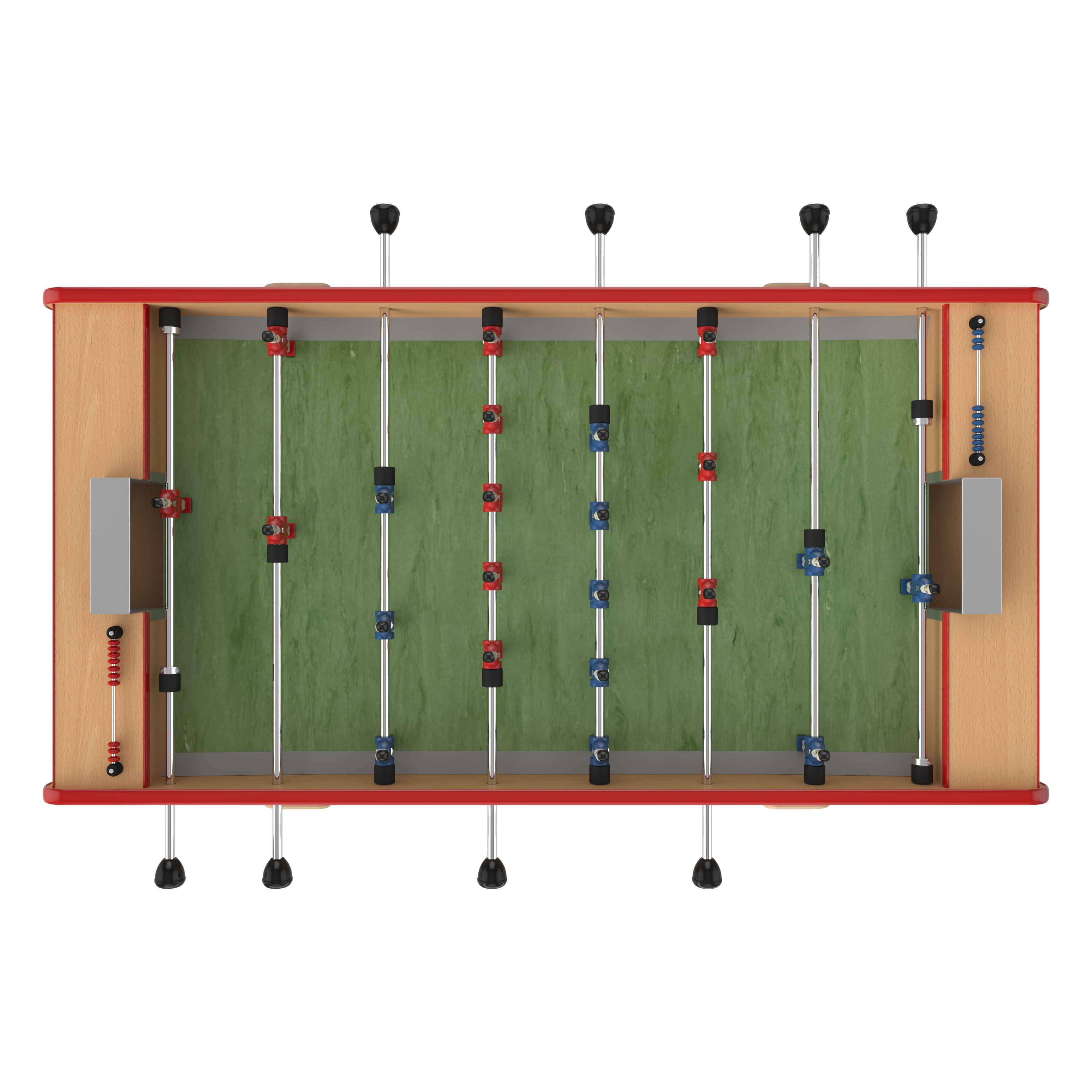 Estetico e robusto, questo tavolo da calcio balilla da 150 x 100 x 93 cm è composto da una solida struttura color faggio e gambe in MDF rosse, aste telescopiche in acciaio cromato e giocatori in alluminio rossi e blu avvitati alle aste. Un vero e proprio biliardino da sala giochi!